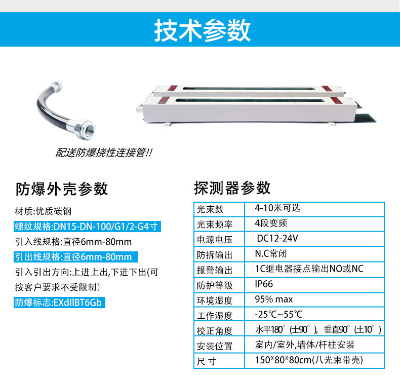 ◆CVC-EX防爆系列對射距離5-100米,均為有線方式。