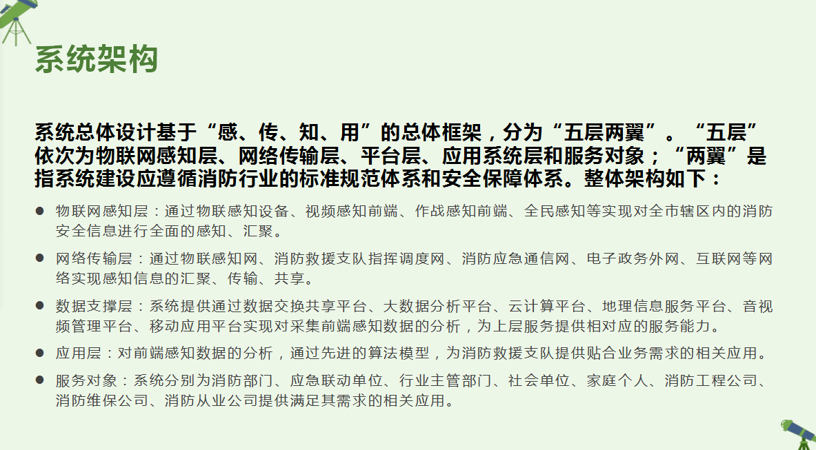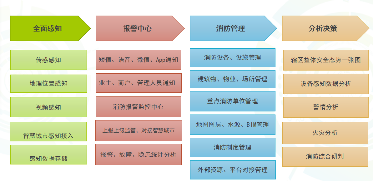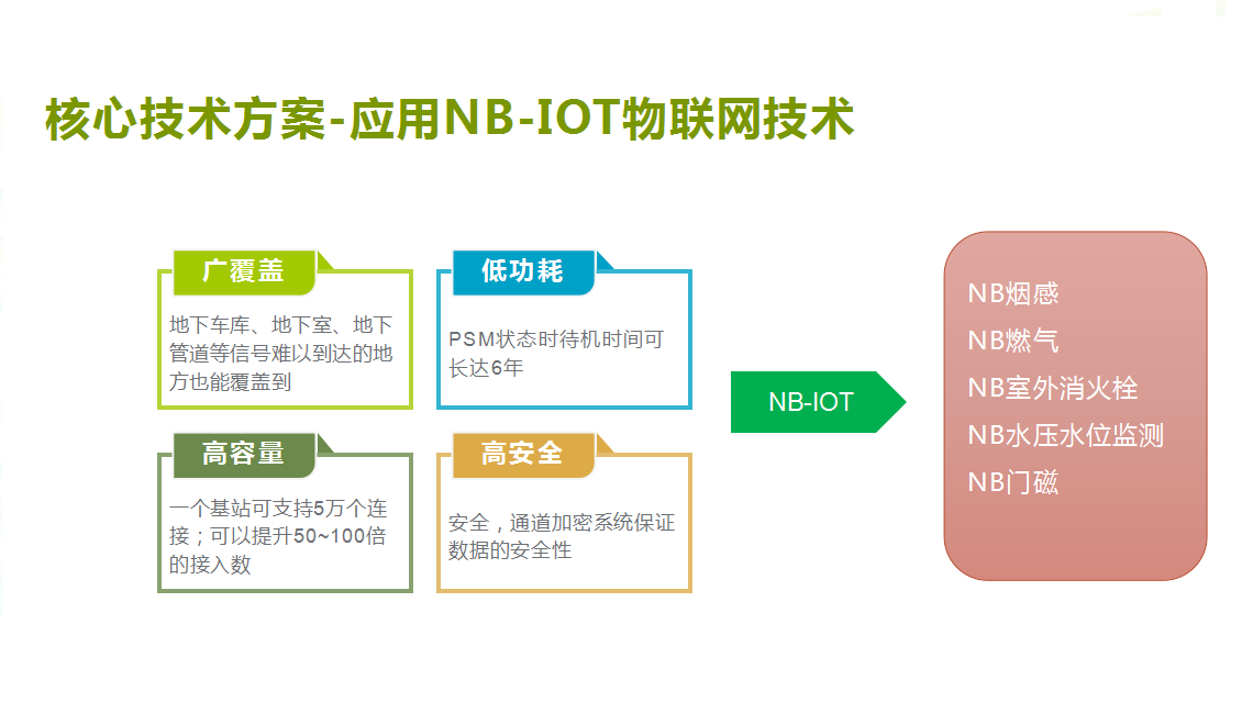 物聯(lián)網(wǎng)感知,通過先進的物聯(lián)網(wǎng)傳感技術(shù)、物聯(lián)網(wǎng)通訊技術(shù)對消防設(shè)備和消防物聯(lián)網(wǎng)數(shù)據(jù)進行統(tǒng)一管理和監(jiān)控,感知層通過NB-IOT、4G/5G、Rola、局域網(wǎng)、消防專線等多種通訊方式,采集各種消防設(shè)備的實時數(shù)據(jù)、時序數(shù)據(jù)、報警數(shù)據(jù)、視頻數(shù)據(jù)等,并匯聚到平臺進行統(tǒng)一的處理和分析,目前平臺管理的設(shè)備包括:傾角報警、漏水水浸設(shè)備、智慧燃氣設(shè)備、消防自動報警系統(tǒng)、NB-IOT煙感設(shè)備、4G市政消火栓、視頻設(shè)備、NB-IOT水浸檢測設(shè)備、NB-IOT門磁、NB-IOT紅外檢測設(shè)備等等。